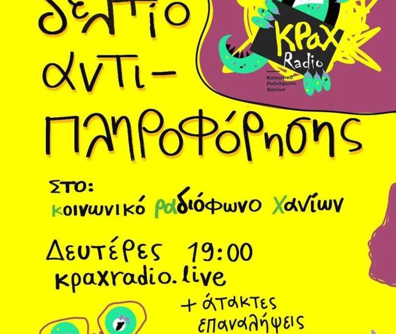 Μετά από μικρή παύση, χορταστικό δελτίο αντιπληροφόρησης στο Κοινωνικό Ραδιόφωνο Χανίων. Θα ακούσουμε: 🔴Ανακοίνωση της…